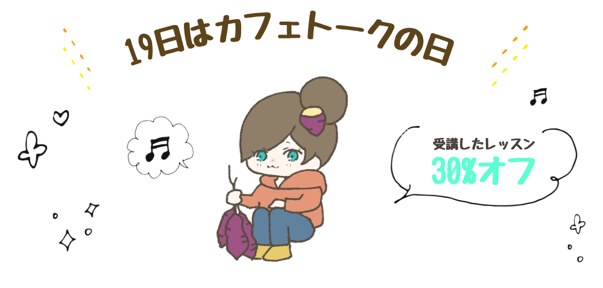 19日におすすめレッスンに掲載されているレッスンを受講すると、カフェトークの日限定バッジ*を取得できます!