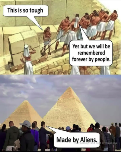 In 2020, even Elon Musk joked on Twitter/X saying, "Aliens built the pyramids obv." It shows just how widespread this thought really is.
