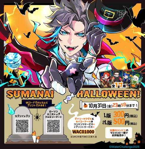ハロウィンがテーマの楽しくかっこいいイラストがランダムで17枚プリントできます。よろしくお願い致します!
