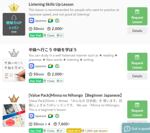 【No.1】Listening Skills Up Lesson ( https://cafetalk.com/lessons/detail/?id=445462 )
