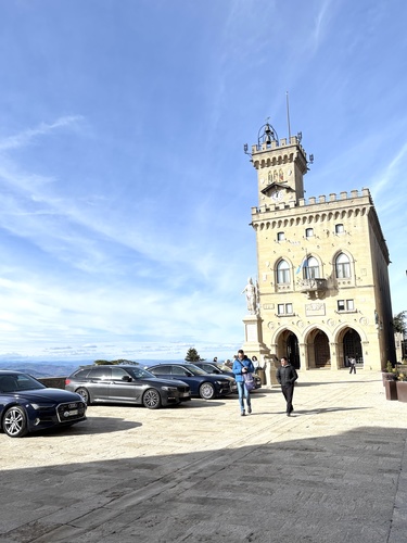 「派手すぎない、エレガントな服でお越しください」と招待を受け、慣れないスカートを履いてティターノ山頂、サンマリノ共和国の旧市街まで行きました。
