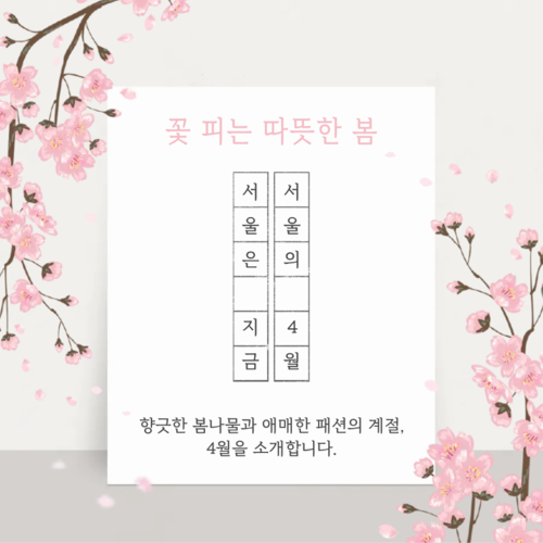 [ ]中の韓国語は発音です。 ▶ 직장인이 4월을 싫어합니다. 会社員が大嫌い4月 한국의 4월에는 공휴일이 단 하루도 없어요. 직장인들에게는 너무 힘든 한 달입니다. * 공휴...