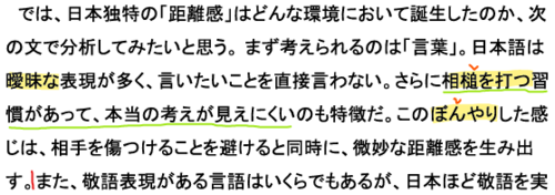日本人特有の”人との距離感”について書かれた文章を読みながら、あなたの国と対比しながら日本人の習慣について学んでいきます。