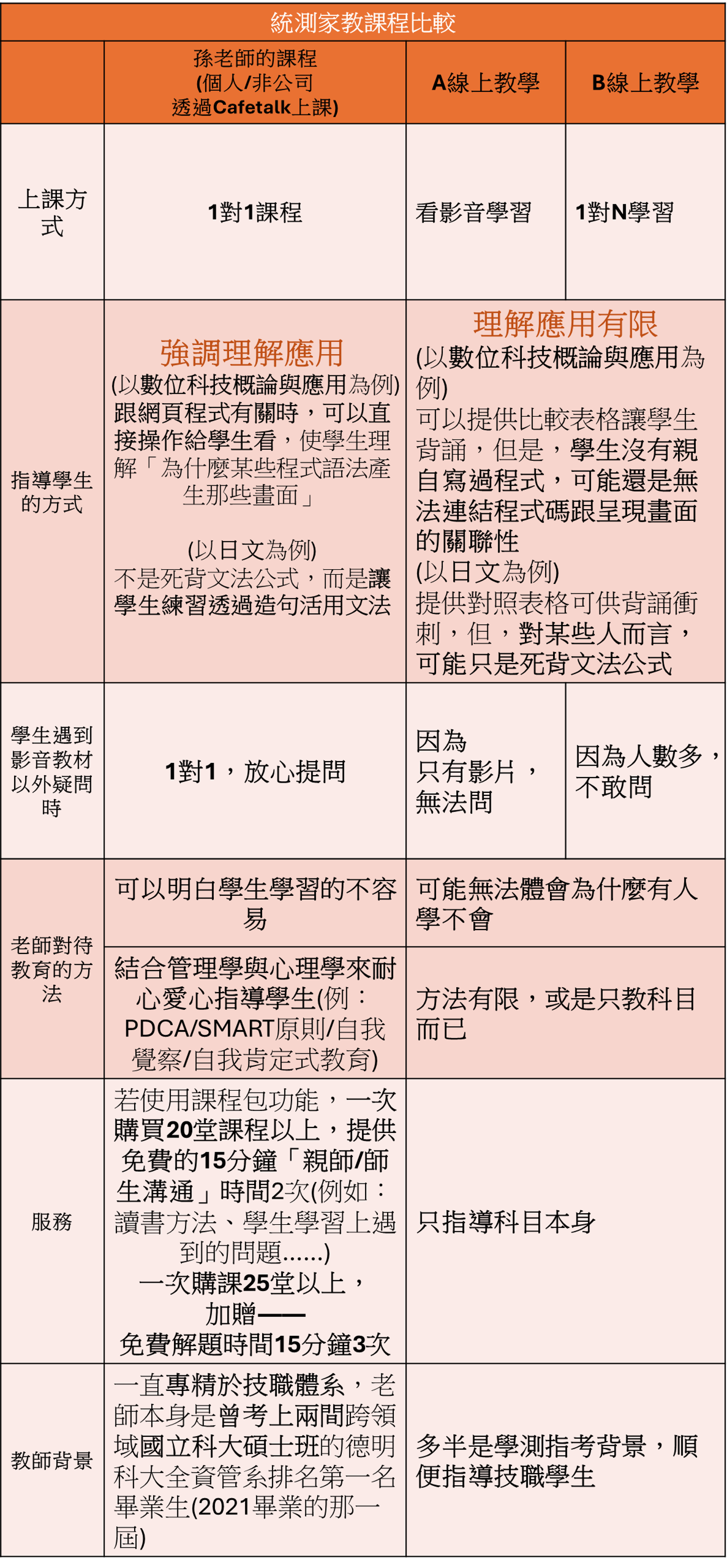 由曾經考上國立高雄科技大學 應用日語系 碩士班 (後來因經濟因素未就讀),J-TEST舊制675分(相當於JLPT N1-N2之間)、曾有7年以上日文筆譯經驗的孫老師本人指導,從分級打基礎到統測刷題。
