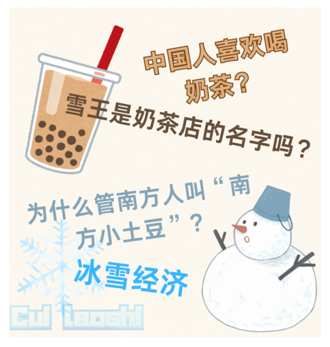 8.奶茶 “中国的年轻人很喜欢喝奶茶。”、“中国现在最火的奶茶店叫什么名字?”、“雪王是指雪人吗?”