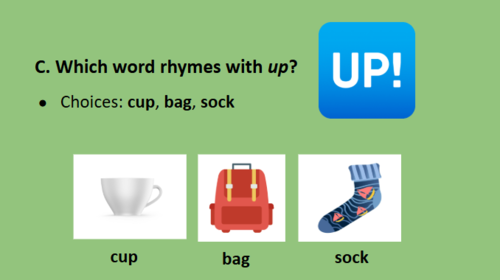 This beginner-level English lesson introduces children to rhyming words through listening, reading, and picture-matching activities. Students will learn to hear and recognize words that rhyme, choose pictures that rhyme with a given word, identify the word that does not rhyme, complete simple sentences using rhyming words, and practice spelling them. By the end of the lesson, students will be able to choose pictures that rhyme with a word, identify non-rhyming words, complete rhyming sentences, and correctly spell basic rhyming words.