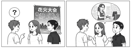 You will look at illustrations and try having conversations using the Japanese you already know.