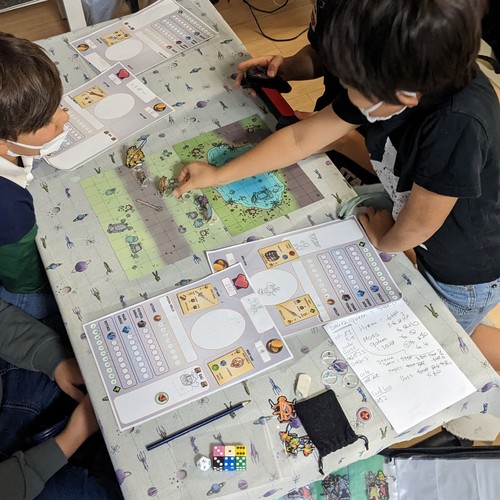 This is a photo from a session for one of my in person kids lessons. Students are having fun using their imagination, communicating and working together.