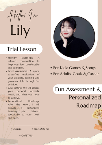 Hello everyone, my name is Lily! I have a profound passion for the Chinese language and Eastern culture. For me, teaching is not just about conveying knowledge; it is about opening a door to a new world and connecting cultures.