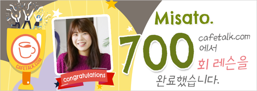저는 일본어 강사 Misato입니다. 현재 동경에 위치한 어학원에서 외국인을 대상으로 일본어를 가르치고 있습니다.