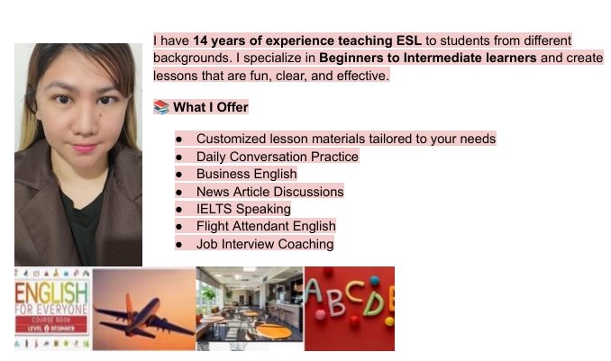 This tutor usually accepts requests up to 24 hours before the desired lesson time